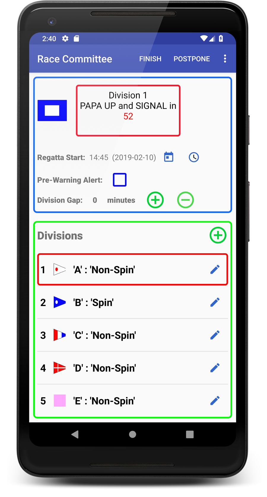 - Boat Managemt: Saves boat info for future races. Maintain all info about the boats. Import boats from a CSV! Name, Sail #, Handicap, and default division.